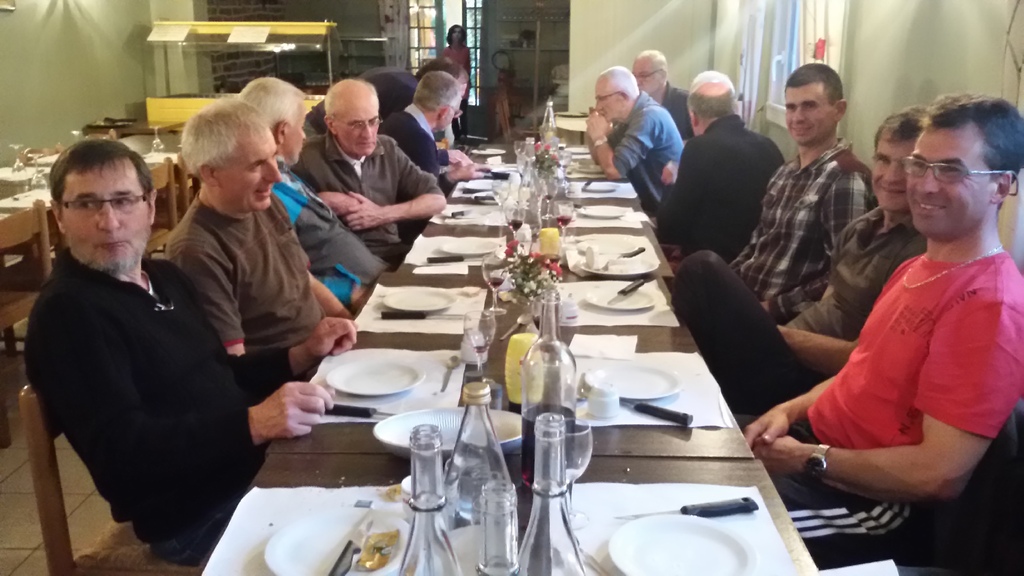 Samedi matin, 25 avril, ce sont 16 cyclos motivés qui prenaient le départ de Beaupréau pour une randonnée de 2 jours de 370 km. François nous dirigeait d'une main de maitre (comme toujours) à travers la Bretagne en direction de St Just. Notre première halte pour une légère collation, s'effectua à Sucé sur Erdre. Après que Laurent et Loic aient réussi à trouver une boulangerie pour se rassasier avec un pain fourré au chocolat qui aurait pu nourrir tout le groupe, c'est à proximité de Rieux que la pluie commença à tomber. Le bar PMU de la ville nous accueillit très gentiment pour que nous puissions manger notre repas du midi à l'abri. Le temps de l'après-midi fut plus clément. Un léger soleil nous accompagna jusqu'à St Just, lieu de notre arrivée en passant par les villes de Rochefort en terre et La Gacilly. Yves, l'intendant du séjour, nous attendait au gite et le petit verre de rosé qu'il nous avait préparé etait le bienvenu. Le diner dans le restaurant de la commune fut plutot animé avec nos 2 Gérard, conscrits des années 46.